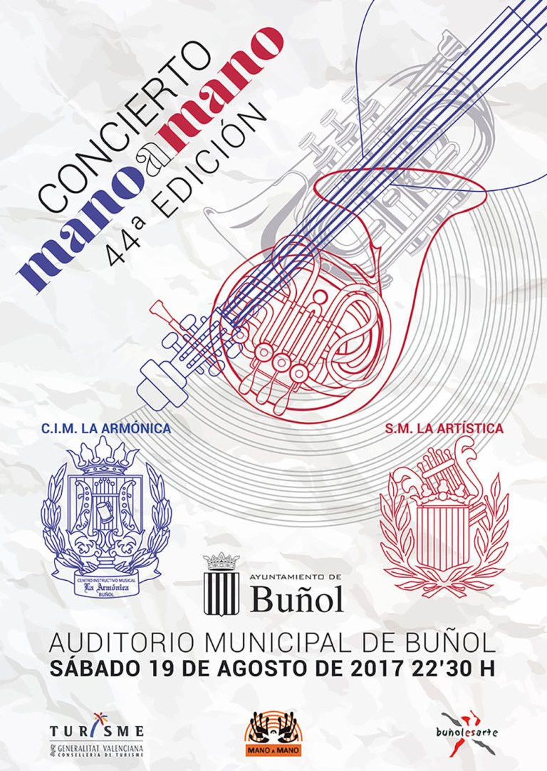 El sábado día 19 de Agosto a las 22:30 horas, tendrá lugar en el Auditorio Municipal de San Luis en Buñol, el tradicional concierto Mano a Mano, ofrecido por las don Bandas de la localidad y convertido en un referentede la música de banda, ya no solo en España, sino también a nivel internacional.